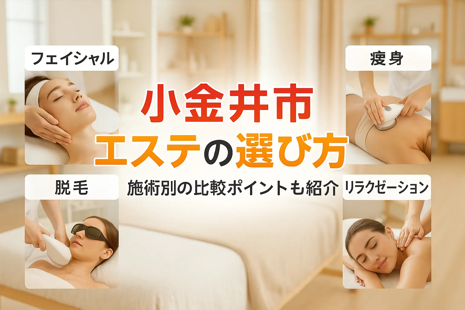 「小金井市で自分に合うエステサロンが見つからない」「施術内容や効果の違いがよく分からない」そんな悩みを抱えていませんか?
